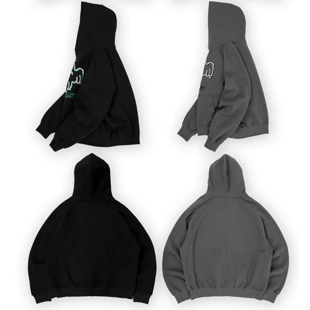Looks Like A Chost Embroidered Thick Hoodies - Black