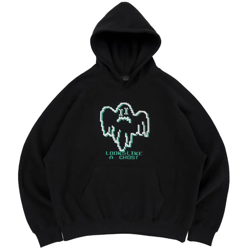 Looks Like A Chost Embroidered Thick Hoodies - Gray