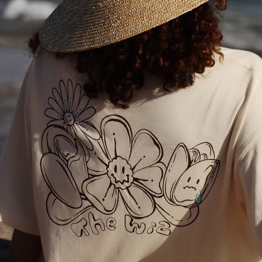 Description: The designer incorporated evocative, emotionally resonant floral motifs, imbuing the design with dynamism and expressive depth. Executed in a hand-painted aesthetic and featuring a summer-exclusive color palette characterized by warmth and romantic nuance, this top exemplifies seasonal sophistication—positioning it as a distinctive and versatile choice for summer wardrobes. Details: Fabric: 100% cotton Key Features: Flower print; “the wiz”print; round neck Fit Notes: Fits relaxed by design. Take your usual size for an easy, slouchy fit or size up for extra oversized energy.